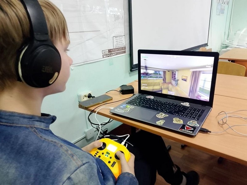 Затем учащиеся отработали навыки управления на техническом симуляторе. Перейдя от теории к практике, воспитанники центра выполнили учебные полёты на FPV-дроне. По словам педагогов, ощущения — как у настоящих операторов БПЛА.