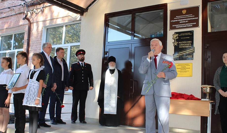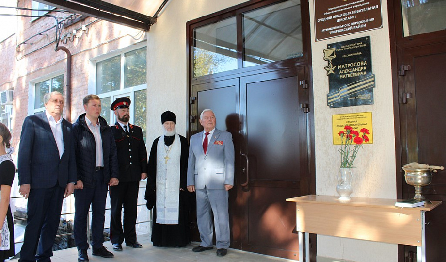 В средней общеобразовательной школе № 1 Темрюкского городского поселения состоялось торжественное открытие мемориальной доски им. Героя Советского Союза Александра Матросова.