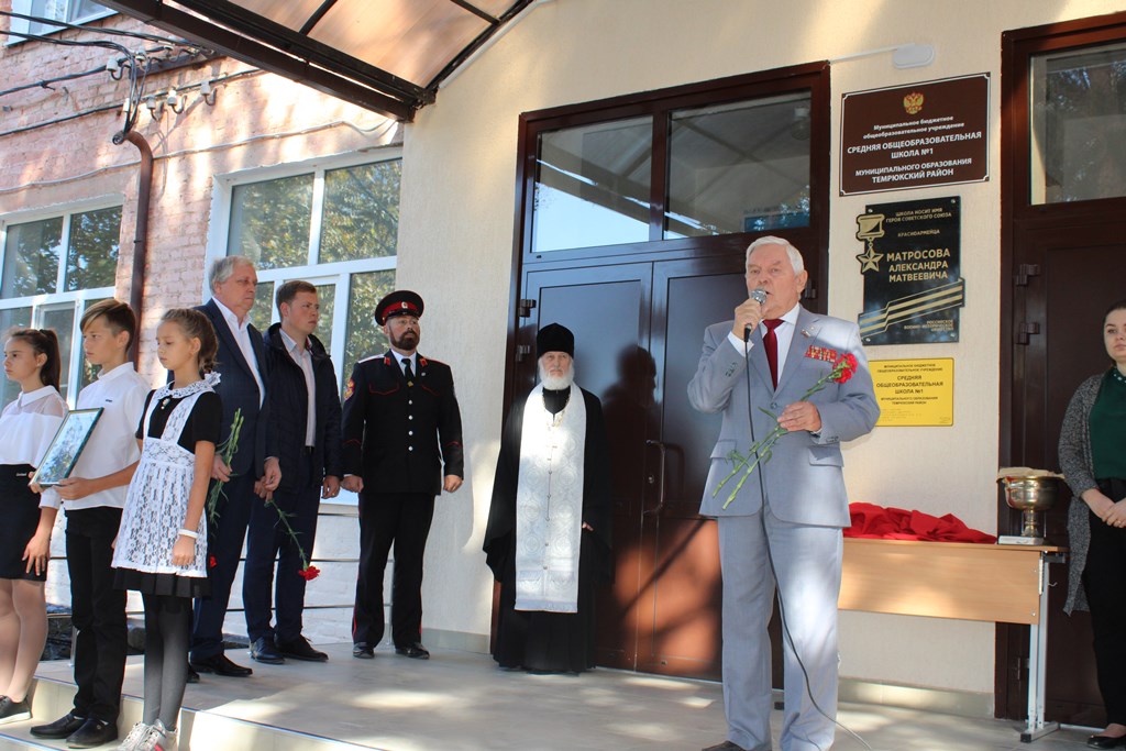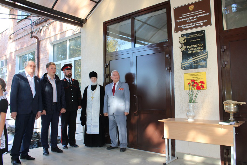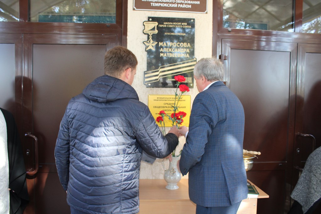 В средней общеобразовательной школе № 1 Темрюкского городского поселения состоялось торжественное открытие мемориальной доски им. Героя Советского Союза Александра Матросова.