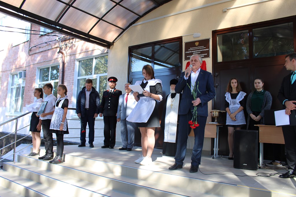 В мероприятии приняли участие председатель Совета муниципального образования Темрюкский район Александр Шерстнёв; председатель Совета ветеранов Темрюкского района Виктор Уженцев; член всероссийского военно-исторического общества, атаман районного Темрюкского казачьего войска Виталий Хандошка; председатель Совета молодых депутатов Темрюкского района Юрий Васильев; штатный священнослужитель храма Святого Благоверного князя Александра Невского Пётр Бобров; учителя и учащиеся школы.