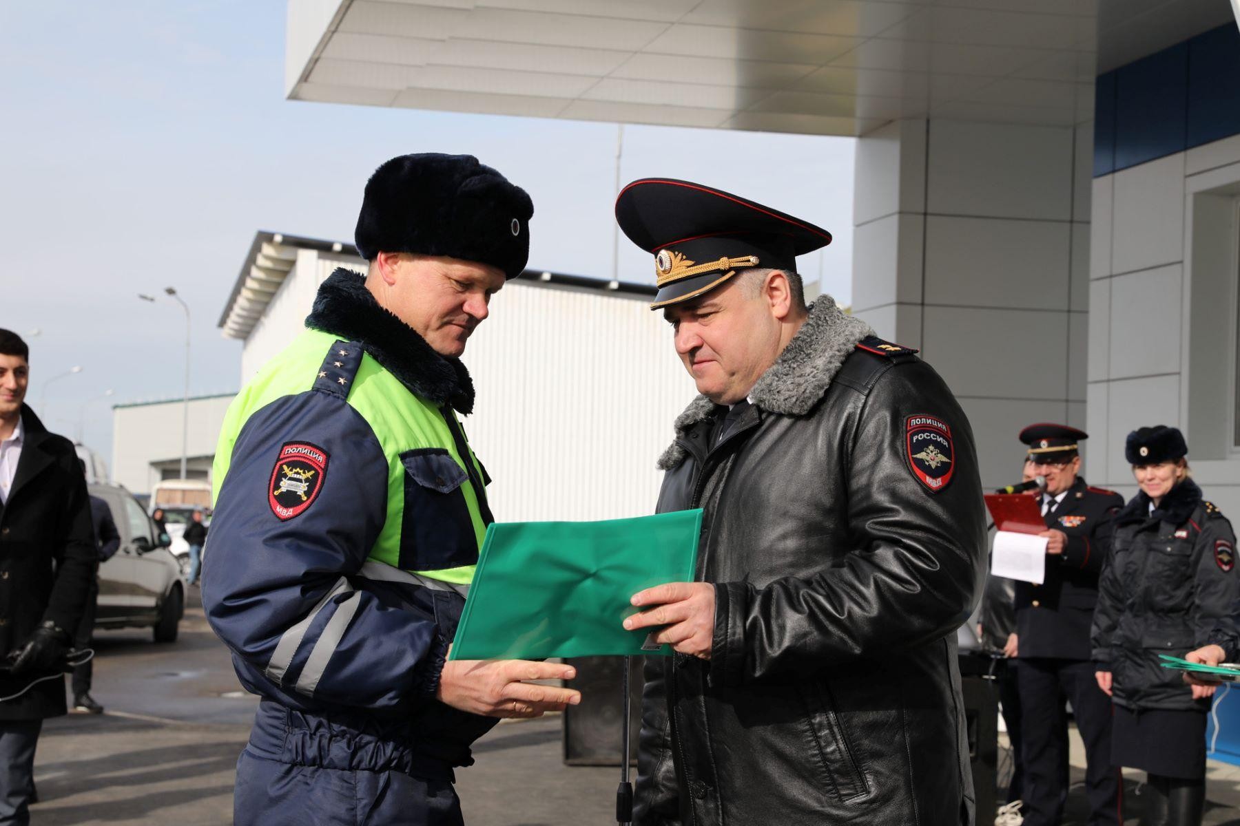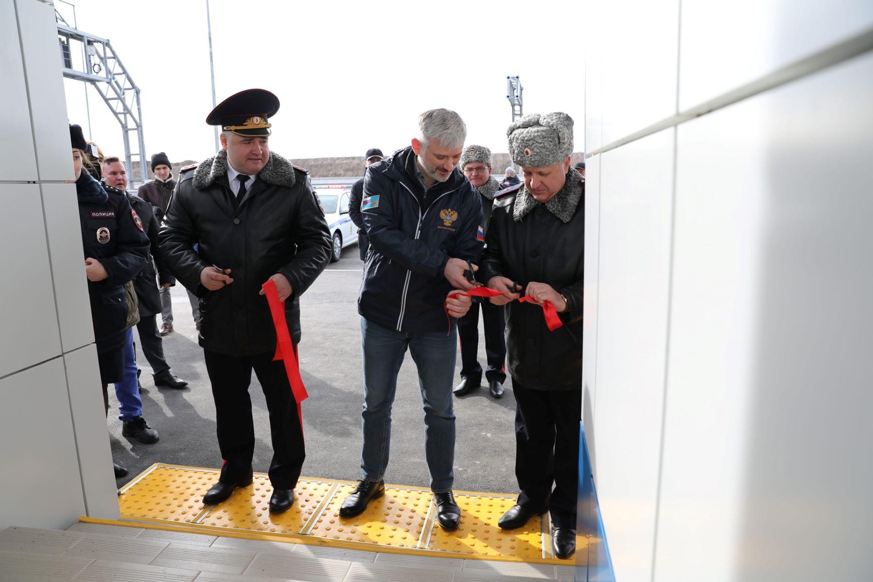 В церемонии открытия приняли участие: начальник ГУОБДД МВД России Михаил Черников, министр транспорта России Евгений Дитрих, начальник ГУ МВД России по Краснодарскому краю Владимир Андреев, начальник УГИБДД Краснодарского края Александр Капустин, начальник Отдела МВД России по Темрюкскому району Александр Лишута, начальник ОГИБДД Отдела МВД России по Темрюкскому району Александр Бочкарев. Глава ГИБДД России отметил, что пост один из лучших по структурному обустройству и технической оснащенности: пост оборудован аппаратно – програмными комплексами автоматического распознавания номеров автомобилей, системой, системой круглосуточного видеонаблюдения, а время на административные процедуры заметно сократится, так как сотрудники ДПС будут использовать сканеры для распознавания документов. Также во время церемонии открытия Михаил Черников вручил инспекторам ДПС ключи от новых служебных автомобилей. Автомобили были приобретены в рамках реализации федерального проекта «Безопасность дорожного движения» национального проекта «Безопасные и качественные автомобильные дороги». Стационарные посты ДПС открыты на подходах к Крымскому мосту по обеим сторонам Керченского пролива со стороны Тамани и Керчи.