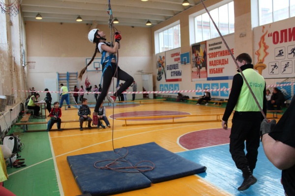 Специалисты станции юных туристов Анна Миткалева и Анастасия Бечина рассказали, что участникам первенства за контрольное время –три минуты - необходимо было подняться по веревке на максимальную высоту. Для подъема использовали ручной зажим – жумар.