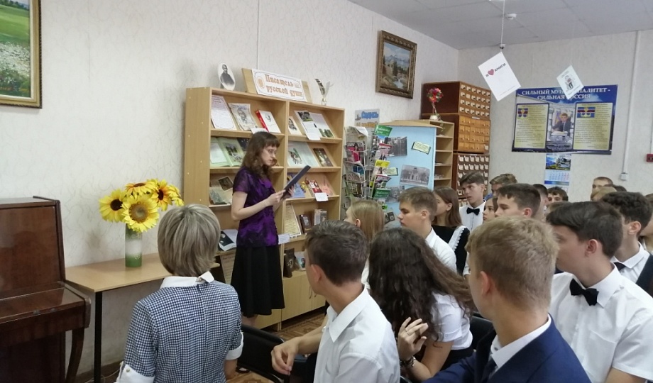 Библиотекарь информационно-досугового зала Наталья Шерстнева провела для школьников обзор книжной выставки «Писатель русской души». На ней были представлены как произведения самого И.С.Тургенева, так и книги о его жизни и творчестве, написанные в разные годы, среди которых биографический очерк «Пленительный дар» литератора конца XIX века Евгения Соловьева, исследования с одинаковым названием «Иван Тургенев», но принадлежащие перу разных авторов: советского литературного критика Виктора Чалмаева и французского писателя русского происхождения Анри Труайя. Старшеклассники познакомились с некоторыми малоизвестными фактами биографии писателя из сборников «Тургенев без глянца» и «Русский Париж», а также посмотрели фрагмент документального фильма «Тургенев. Русское сердце» (режиссер В. Арясов), сообщила заведующая отделом обслуживания межпоселенческой библиотеки Элина Соколова.