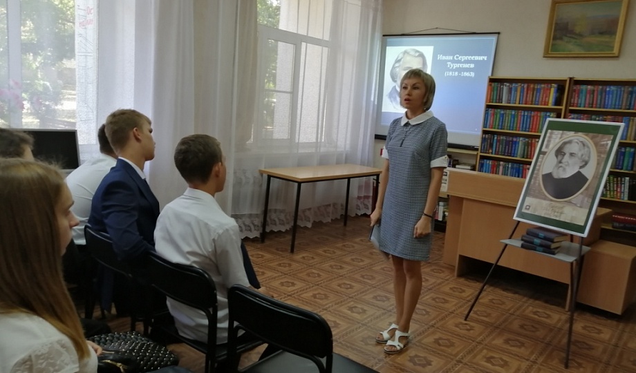 В рамках выполнения этой культурно-образовательной программы 2 сентября специалисты межпоселенческой библиотеки провели для учащихся 10 «Б» класса школы №13 мероприятие, посвященное памяти великого русского писателя И.С. Тургенева. В свое время многие европейские литераторы заявляли, что Тургенев принадлежит не только России, но и всему читающему миру. О значимости творчества классика не только для русской, но и мировой культуры, также говорит тот факт, что 200-летний юбилей писателя, который широко отмечался в ноябре 2018 года, был включен ЮНЕСКО в список памятных дат, имеющих значение для всего человечества.