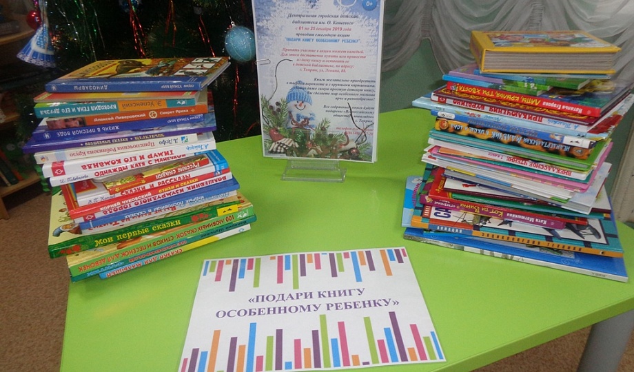 «Подари книгу особенному ребенку» под таким названием в Центральной городской детской библиотеки им. О. Кошевого состоялась ежегодная акция. С 1 - 25 декабря в детскую библиотеку желающие принять участие в акции приносили самые разные книги: с красочными картинками - для самых маленьких читателей, с веселыми историями - для детей постарше, познавательные энциклопедии - для маленьких «почемучек» и другие.