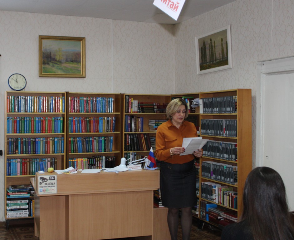 Директор МБУК «Межпоселенческая библиотека» Асланова Л.Б., поздравила коллег с наступающими праздниками, пожелала успехов в сдаче годовых отчетов и вручила «Благодарственные письма» лучшим библиотекарям по итогам года, заведующая методико-библиографическим отделом М.В. Зюбенко.