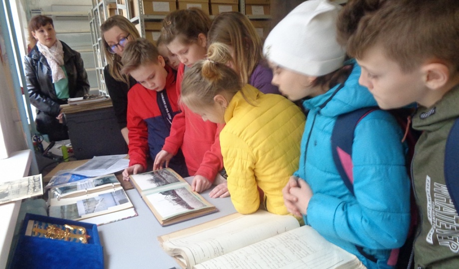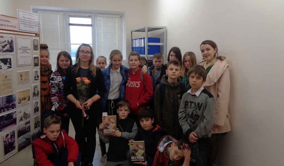 Школьников встретила начальник архива Елена Васильевна Падалица, которая провела для детей экскурсию по отделу. Ученики побывали в трех хранилищах, узнали сроки и условия хранения документов, познакомились с историческими документами, такими как: метрическими книгами, фотографиями военных лет, письмами с фронта и другими.