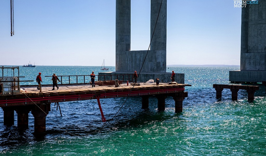 - Благодаря рабочим мостам большой Крымский мост поднялся из воды и набрал нужную высоту. Сейчас все процессы сосредоточены наверху, на железнодорожных пролетах: идёт укладка рельсов, балластировка пути, устройство системы освещения железной дороги и архитектурной подсветки фарватерного участка. Предстоит большой объем работы по монтажу устройств сигнализации, централизации и блокировки. «Времянки» выполнили свои задачи и демонтируются. Акватория остаётся чистой», - рассказал заместитель генерального директора по инфраструктурных проектам компании «СТРОЙГАЗМОНТАЖ» Леонид Рыженькин.