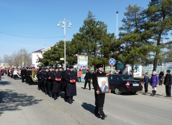 По главной улице районного центра с военным оркестром прошла многочисленная траурная колонна. Школьники, студенты, пенсионеры, темрючане и приехавшие по делам в город люди, взрослые и дети замирали на улице Ленина, Декабристов, Бувина - по всему маршруту последнего пути В.И.Головченко. Всматривались в лицо фронтовика, рассматривали его боевые и трудовые награды, плакали…