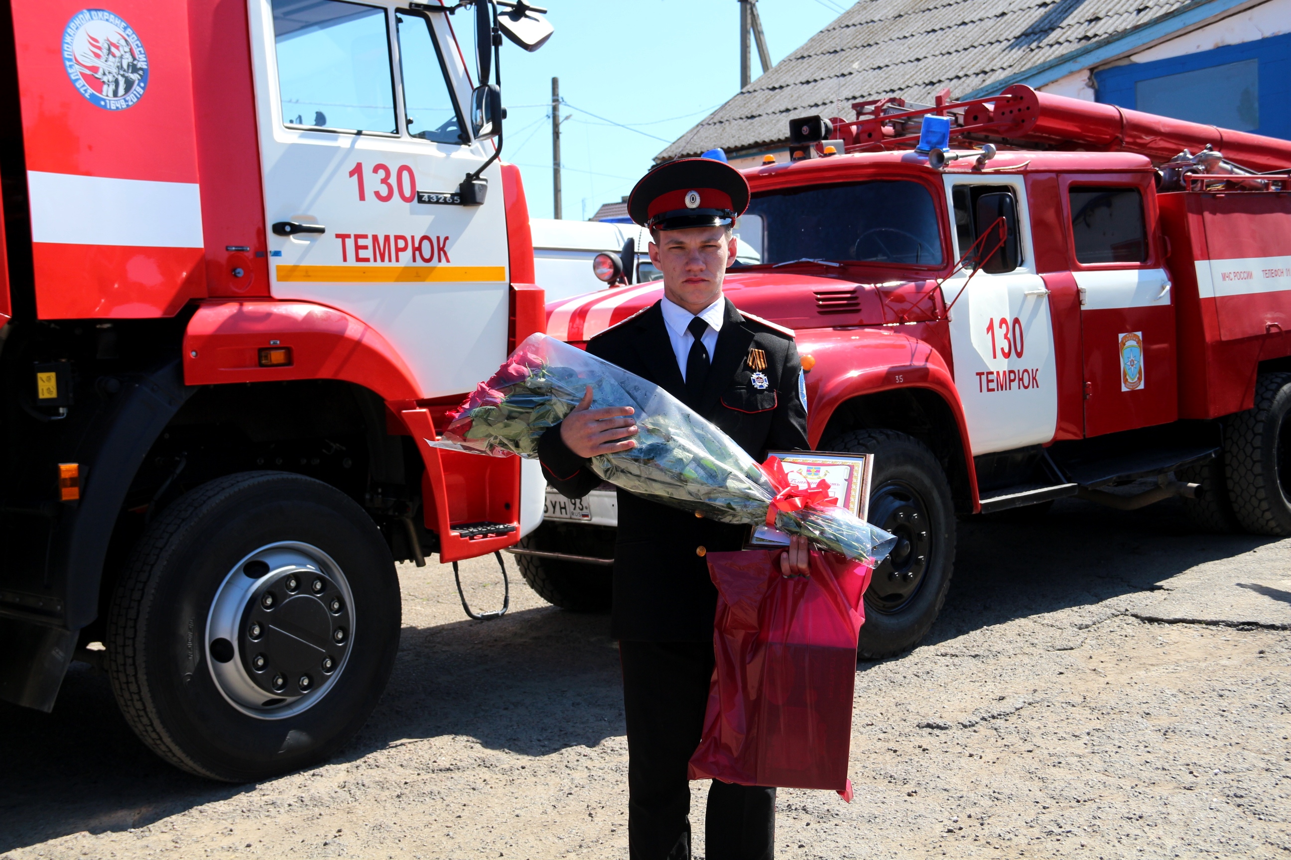 За проявленное мужество, смелость и самоотверженность, проявленные при исполнении гражданского долга – спасения женщины на пожаре в условиях, сопряженных с риском для жизни Анатолию Шамрай вручили благодарственное письмо главы Темрюкского района и памятный подарок.