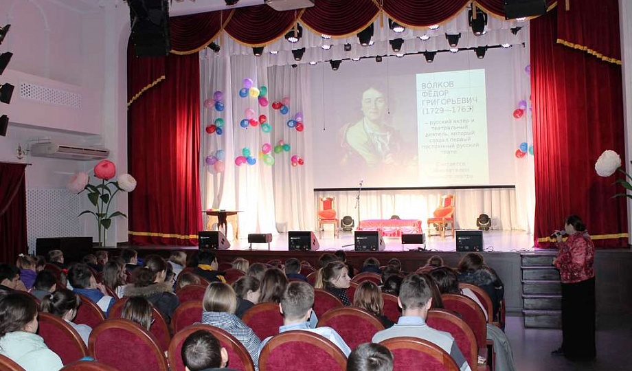 26 ноября 2019 года в зрительном зале районного Дома культуры г. Темрюка состоялась познавательная программа «Театр в лицах. От Федора Волкова, до Года театра в России» для учащихся МБОУ СОШ №3, в рамках Всероссийского культурно-образовательного проекта «Культурный норматив школьника» с участием театральных коллективов МБУК «РДК»: Народного драматического театра «Бенефис» и театра юного актёра «Дебют», руководитель Заслуженный работник культуры Кубани А.К. Прокудина.