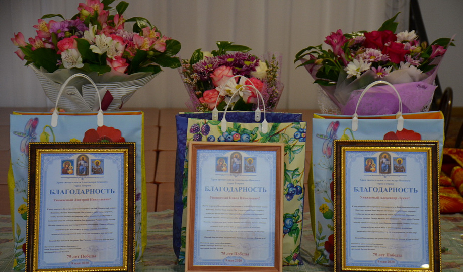 9 мая 2020 года, в храме святого благоверного князя Александра Невского города Темрюка, прошли Богослужения, возглавляемые настоятелем храма протоиереем Виталием Колмыком. После Божественной литургии был совершен Благодарственный молебен за дарование Победы в Великой Отечественной войне 1941-1945 годов. Затем священнослужитель отправился к Вечному огню, расположенном на Воинском мемориале, где совершил заупокойную литию о почивших воинах. После Богослужений протоиерей Виталий посетил ветеранов Великой Отечественной войны на дому – Дьяконенко Дмитрия Николаевича, Диколенко Павла Николаевича, Грызунок Александра Лукича, чтобы поздравить дорогих героев с радостным праздником - Днем Победы. Он вручили им благодарственные грамоты, цветы и памятные подарки, благодаря их за те жертвы любви, что они принесли ради нас - ради того, чтобы мы жили под мирным небом.
