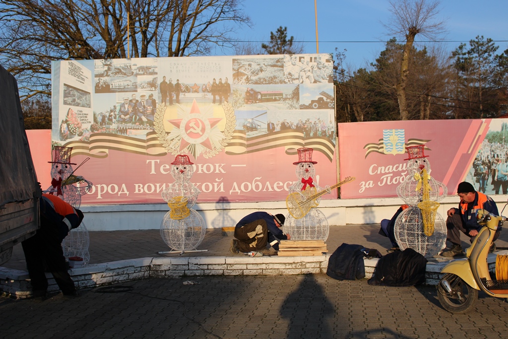 Сегодня на центральной площади Темрюка устанавливаются малые архитектурные формы в виде упряжки оленей, снеговиков и Снегурочки. Этот подарок для жителей района приготовил глава муниципалитета Федор Бабенков. Установленные сегодня светодиодные фигуры пройдут тестирование и в ближайшие дни озарят светом главную новогоднюю площадь. Это первый этап в придании городу праздничного вида. В скором времени жителей района ожидают новые приятные сюрпризы.