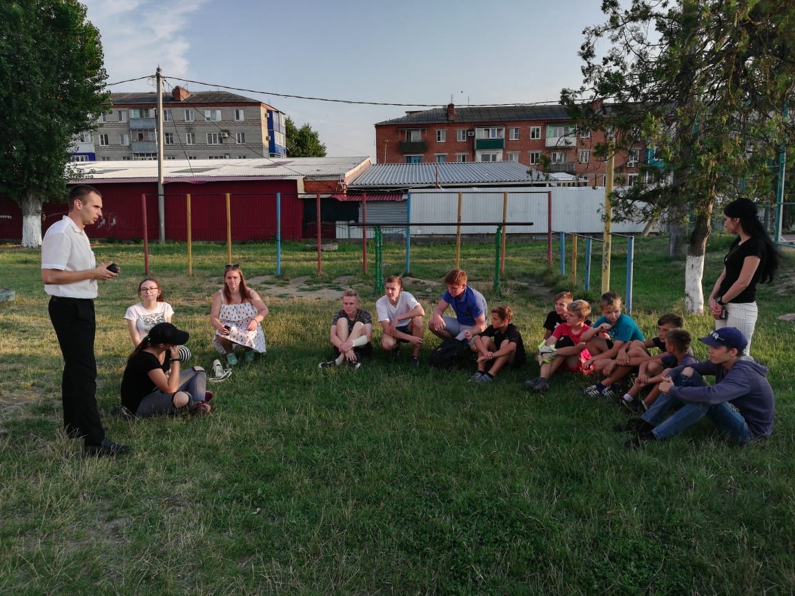 На летней площадке в пределах территории школы номер №2 инспекторами ОПДН ОМВД России по Темрюкскому району Денисовым Русланом Геннадьевичем и Бекк Инной Владимировной была проведена тематическая беседа на тему профилактики безнадзорности и правонарушений несовершеннолетних с участниками молодежной летней дворовой площадки (ведомственная принадлежность МКУ Темрюкского городского поселения Темрюкского района «Молодежный досуговый центр») по адресу г. Темрюк, территория МБОУ СОШ № 2 (организатор досуга А.А. Нетелева).