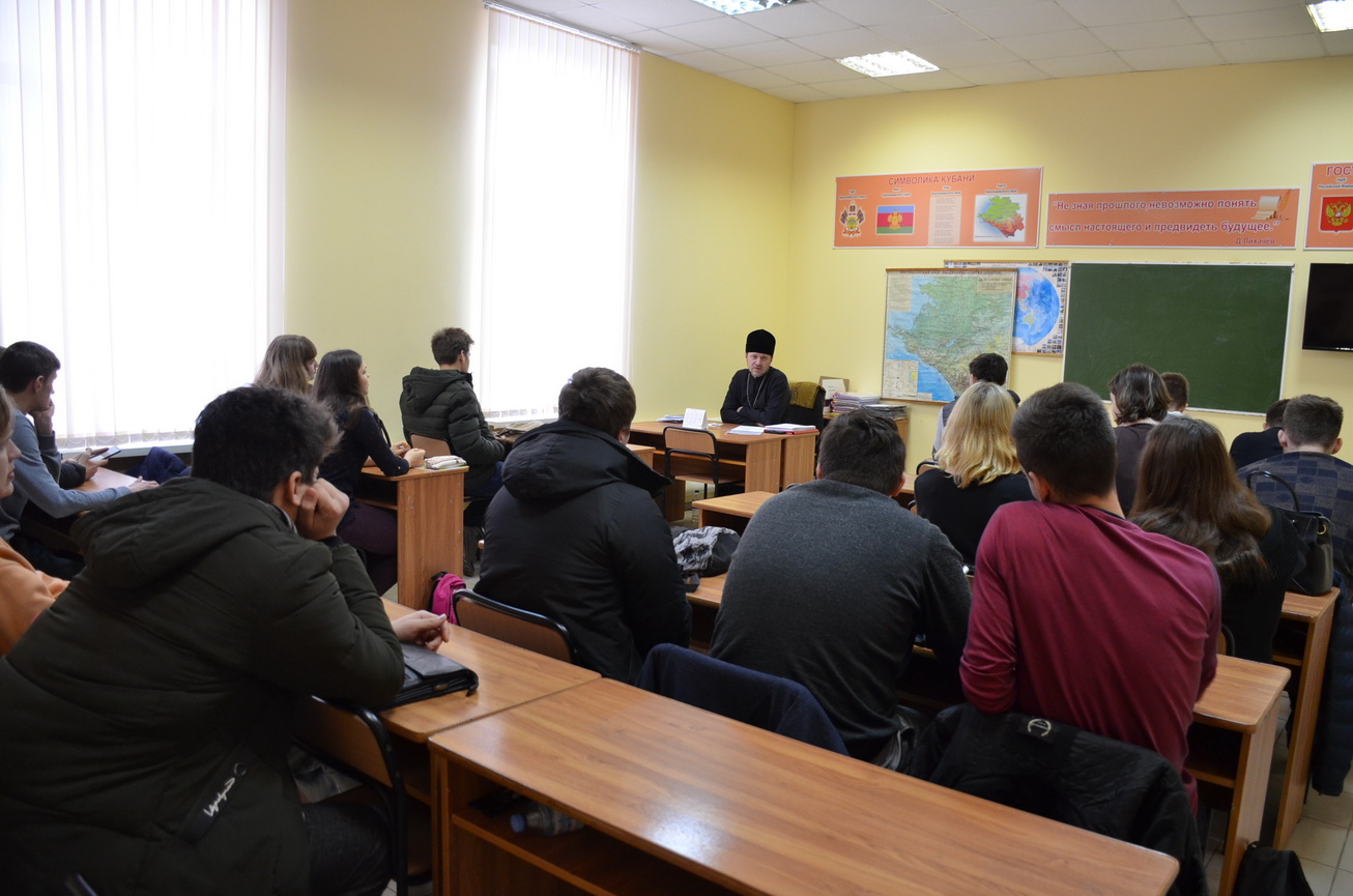 Встреча духовника Кубанского казачьего государственного института пищевой индустрии и бизнеса со студентами была приурочена ко Дню студента