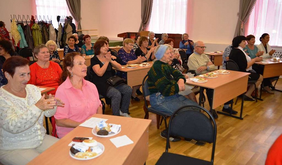 1 октября 2019 года МБУК «Районный Дом культуры» вновь распахнул двери нашим дорогим пенсионерам. Во время праздничного чаепития в адрес людей старшего поколения прозвучало много тёплых слов и пожеланий не только от ведущей мероприятия художественного руководителя РДК Светланы Волковой, солистов учреждения культуры Ирины Белоус, Евгения Лозы, Натальи Кузьменко, но и от специалистов социальной работы центра комплексного обслуживания населения. От имени всех внуков участница вокального ансамбля солистов-вокалистов «Школа вокала» Стефания Сбитнева произнесла слова поздравления и исполнила песню в честь первого осеннего праздника.
