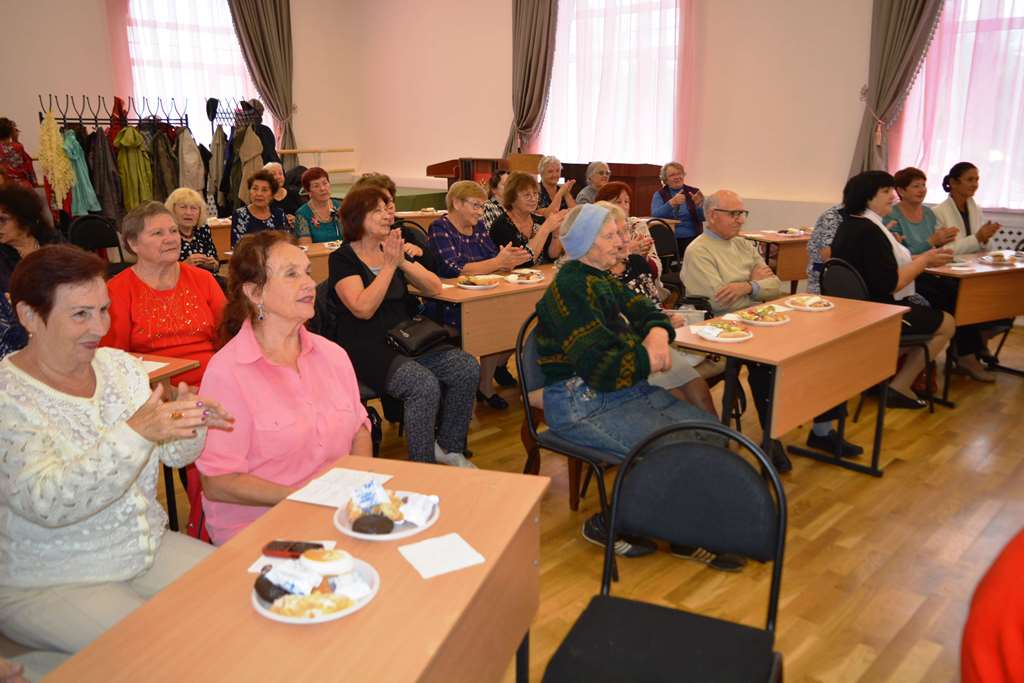 1 октября 2019 года МБУК «Районный Дом культуры» вновь распахнул двери нашим дорогим пенсионерам. Во время праздничного чаепития в адрес людей старшего поколения прозвучало много тёплых слов и пожеланий не только от ведущей мероприятия художественного руководителя РДК Светланы Волковой, солистов учреждения культуры Ирины Белоус, Евгения Лозы, Натальи Кузьменко, но и от специалистов социальной работы центра комплексного обслуживания населения. От имени всех внуков участница вокального ансамбля солистов-вокалистов «Школа вокала» Стефания Сбитнева произнесла слова поздравления и исполнила песню в честь первого осеннего праздника.