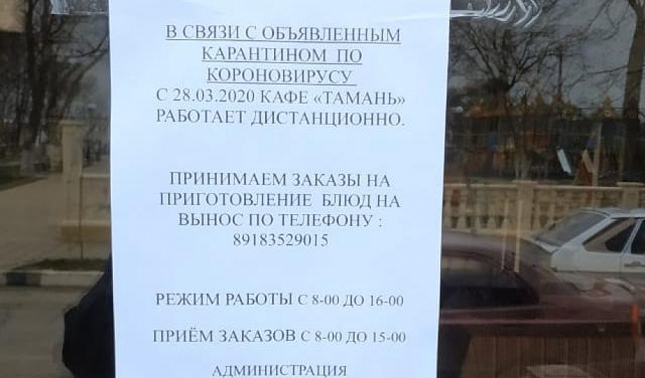 В соответствии с постановлением губернатора с 28 марта на Кубани временно прекратили прием отдыхающих и ограничена работа точек общественного питания. Кафе и рестораны посетителей не принимают, при этом сохраняется услуга доставки еды.