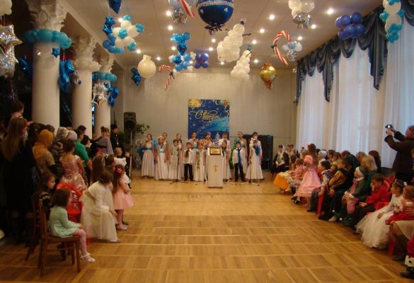 В Рождественском представлении, которое открыли учащиеся детской школы искусств, принял участие настоятель храма протоиерей Виталий Колмык, поздравивший всех присутствующих с этим удивительным праздником; хор храма св. А. Невского, спевший тропарь, кондак, величание праздника, а также колядки. Воспитанники воскресной школы, действующей при храме, преподнесли зрителям свой сюрприз в виде двух рождественских песен и небольшого инсценированного стихотворения.