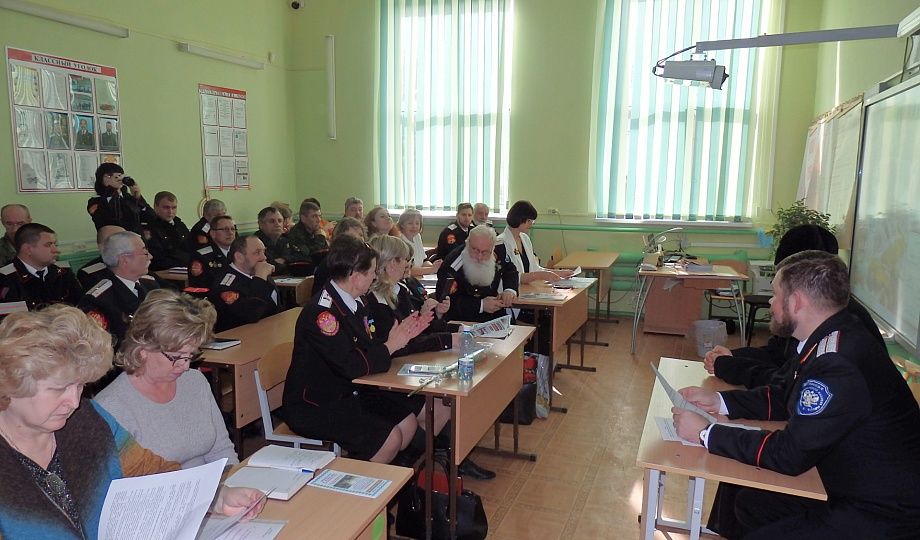 В Темрюкской школе № 14 состоялся семинар «Перспективные направления организации образовательного процесса в казачьих классах и группах казачьей направленности муниципального образования Темрюкский район» В нем приняли участие более 50 человек: казаки районного казачьего общества, директора и педагоги школ № 14, 18, 21, 28, 32.