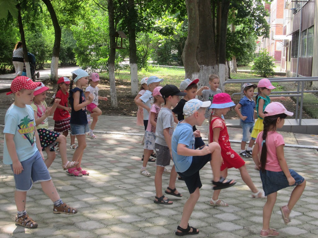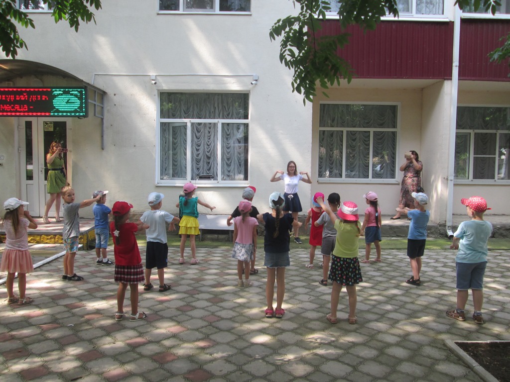 Завершающий этап встречи прошел на площадке перед детской библиотекой. Ребята выполняли зарядку, танцевали «Танец маленьких утят», рисовали цветными мелками своё летнее настроение.
