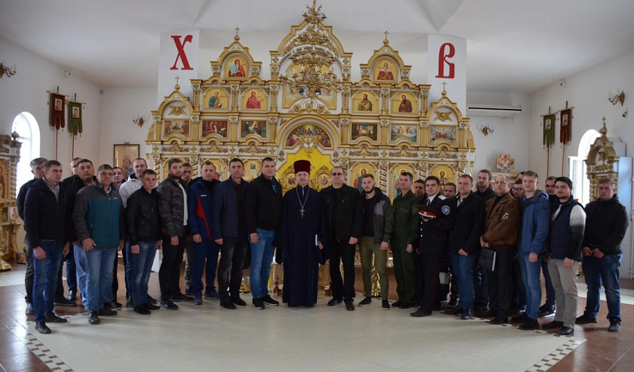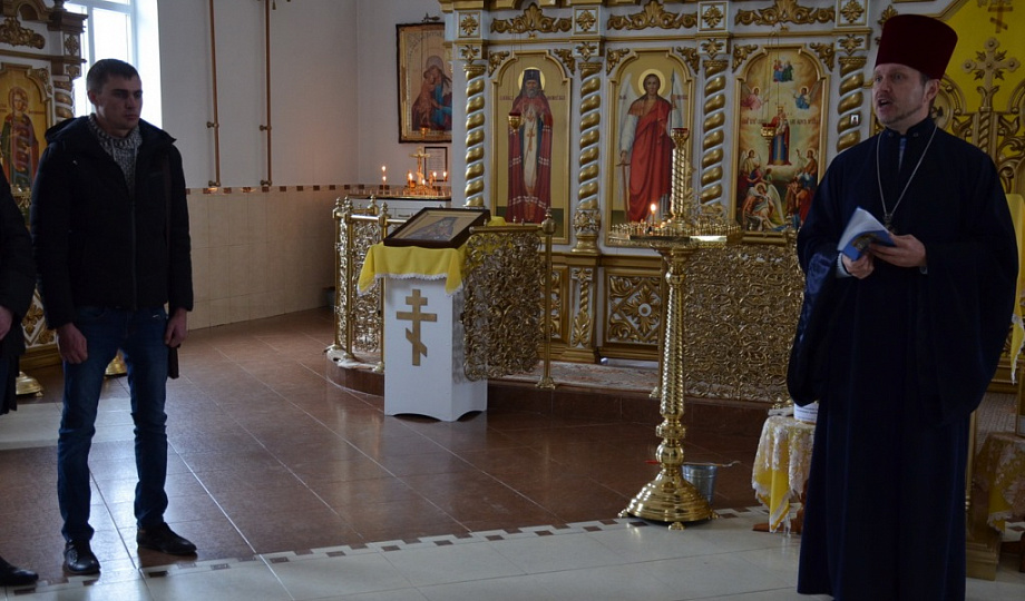 Занятие провел настоятель храма, духовник данного учебного заведения протоиерей Виталий Колмык. Священнослужитель рассмотрел с присутствующими, общее количество которых составило 31 человек, устройство православного храма, рассказал о том, почему мы называем себя Православными; что такое Православие, откуда оно пришло к нам; в кого мы верим; кем были первые ученики Иисуса Христа; рассказал о Заповедях Божиих, о Таинствах Православной Церкви; также рассказал о православном христианском взгляде на жизнь и жизненные ценности. По завершении лекции все присутствующие, во время зачета, показали положительные результаты.