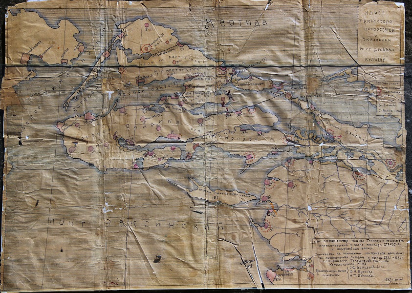Как рассказал Александр Демченко, научный сотрудник музея, организовавший топографическую прорисовку, карта создана коллективом Темрюкского музея в 1927 году под руководством первого директора Сергея Францевича Войцеховского и прорисована вручную. За прошедшие более чем 80 лет бумажный материал подлинной карты значительно обветшал и даже при условии идеального хранения музейного предмета, наименования древних городищ на ней читаются с трудом. Между тем, особенность карты – в ее абсолютной наглядности, информативности и возможности иллюстрации античного периода истории Таманского полуострова.