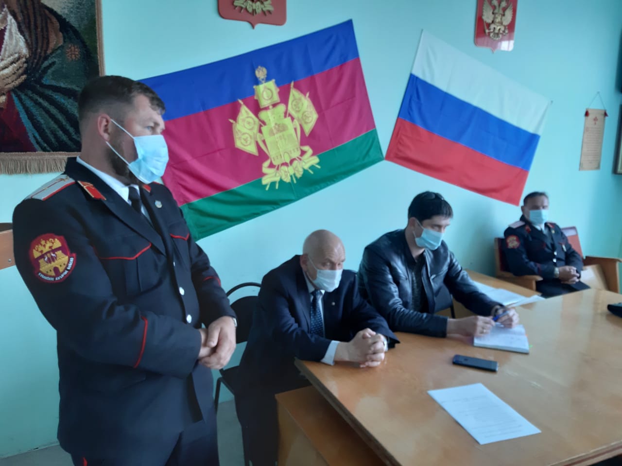 С докладом о положении в районе, в связи с продолжающимся карантином и самоизоляцией выступил Иван Костюк. Была затронута тема о патрулировании казачьих и совместных с администрацией и полицией народных дружин по городу и району.