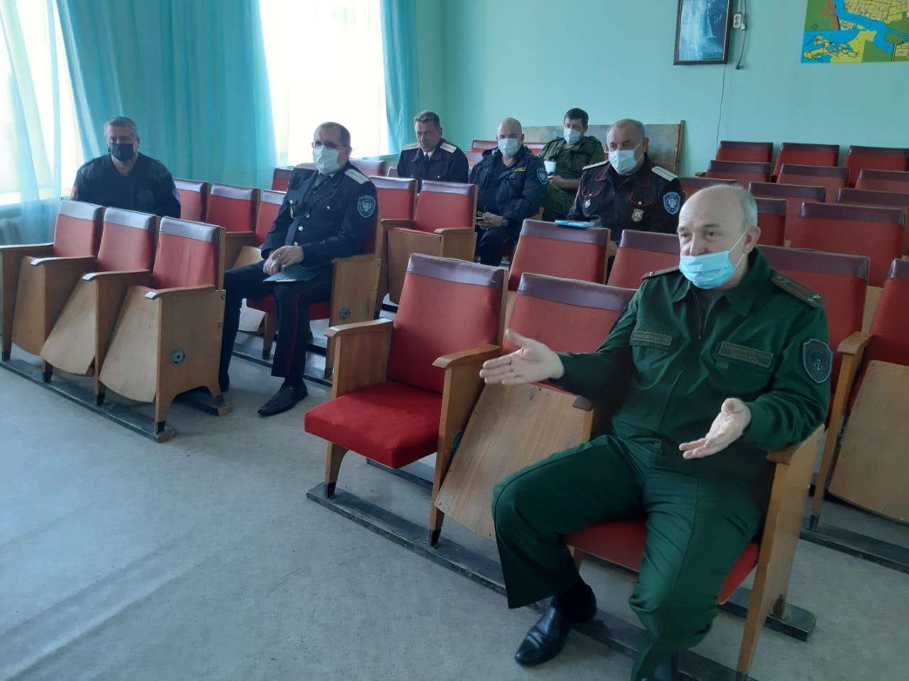 В казачьем штабе Темрюкского района состоялся Совет атаманов первичных казачьих обществ района. В совещании приняли участие заместитель главы района Иван Костюк и представитель ФСБ по Темрюкскому району.