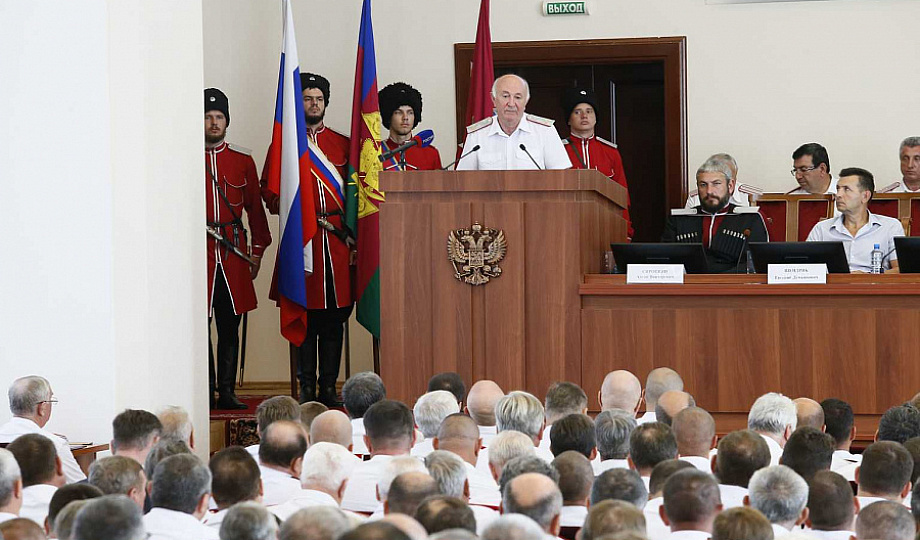 На мероприятии под председательством Николая Долуды подвели итоги работы за пять месяцев, а также обсудили планы и задачи, стоящие перед кубанским казачеством.