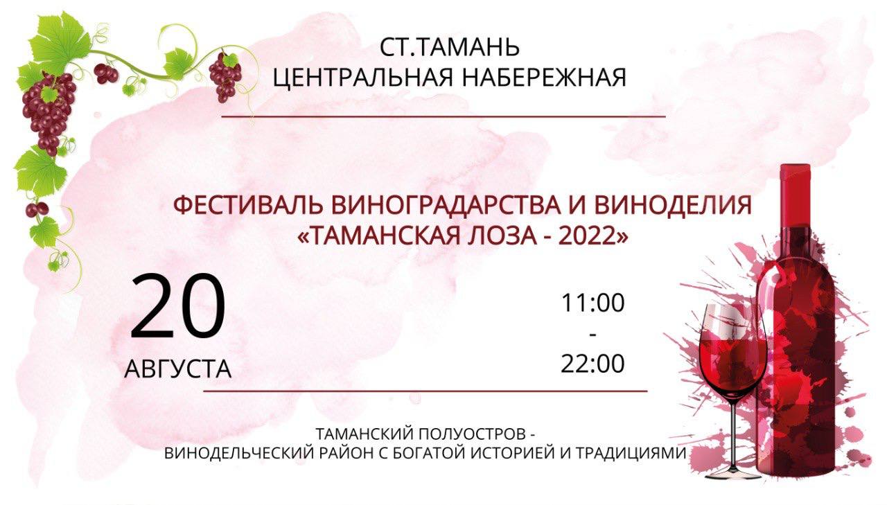 20 августа на набережной станицы Тамань пройдёт праздник виноградарства и виноделия «Таманская лоза - 2022»
