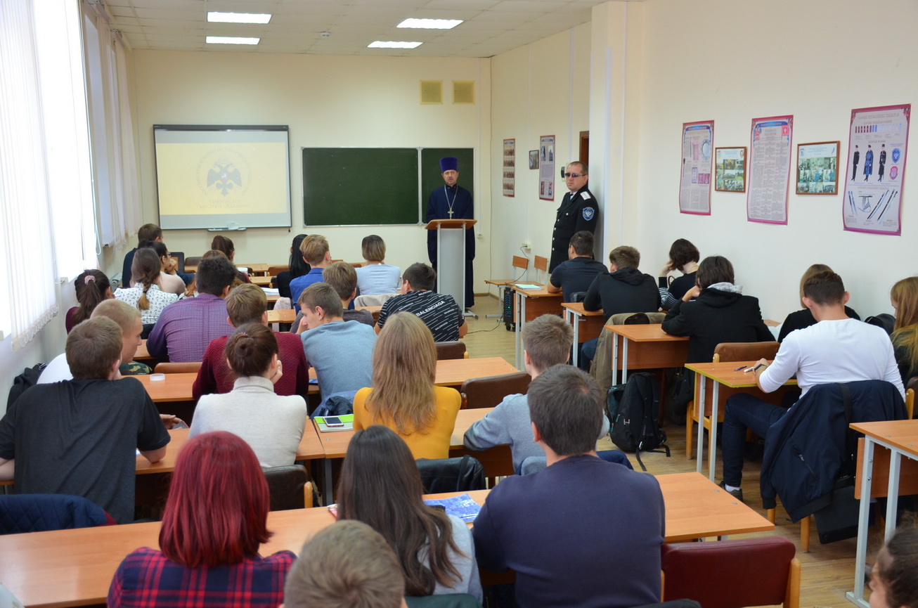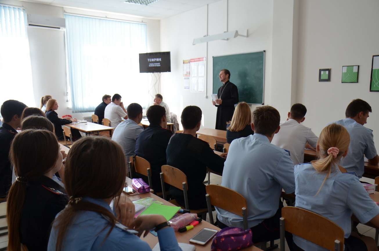 Протоиерей Виталий рассказал студентам, общая численность которых составила 62 человека, об ожесточенных боях в ходе Новороссийско-Таманской операции по разгрому немецко-фашистских войск, проходившей в 1943 году, в результате которой разгромленные части противника были прижаты к берегам Керченского пролива и уничтожены; о том, что разгромом таманской группировки врага и освобождением Таманского полуострова закончилась одна из самых героических битв Великой Отечественной войны — битва за Кавказ. Советские войска ликвидировали важный оперативный плацдарм противника, который обеспечивал ему оборону Крыма и возможность наступательных действий в сторону Кавказа. Германия была вынуждена вывести из Азовского Фморя все свои корабли. Освобождение Новороссийска и Таманского полуострова значительно улучшило базирование Черноморского флота и обеспечило в дальнейшем удары по крымской группировке противника с моря и через Керченский пролив.