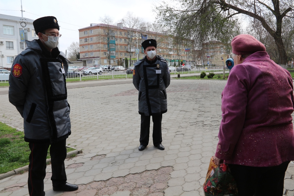 В связи со сложной эпидемиологической обстановкой и режимом изоляции населения на улицы города вышли казачьи патрули. Они рекомендуют жителям, самоизолироваться, разъясняя каждому о необходимости остаться дома.