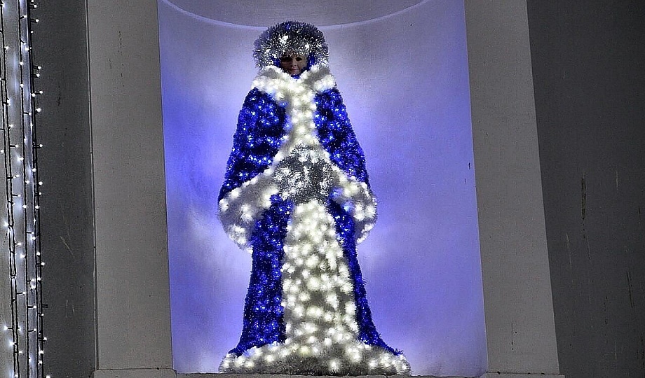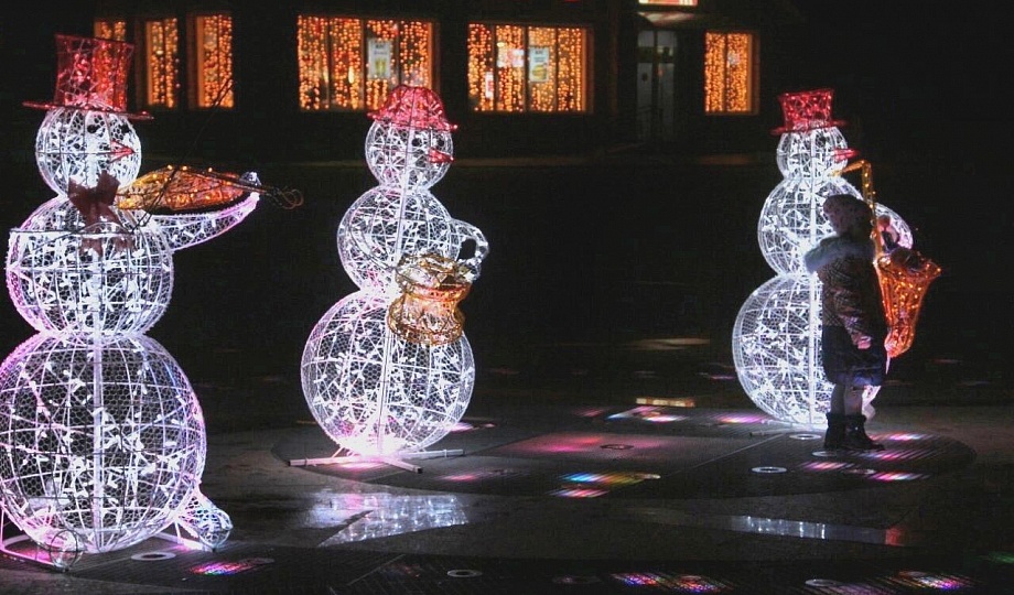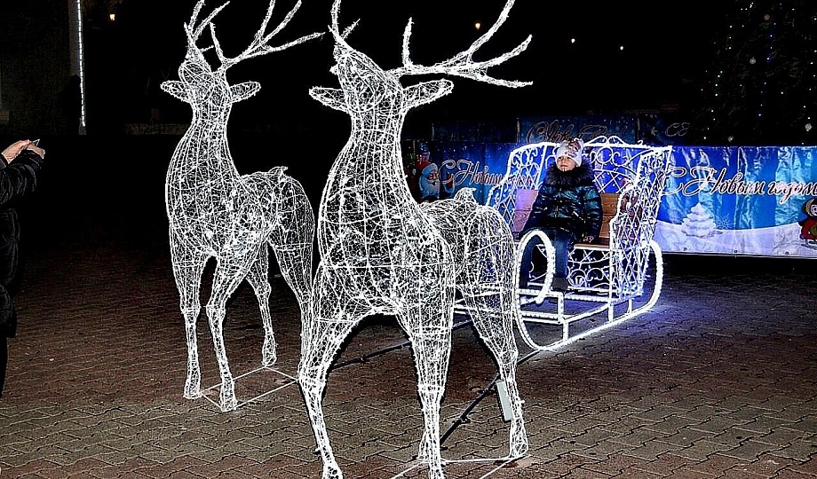 Центральной композицией стали светодиодные фигуры снеговиков и сказочных оленей в упряжке. Здание районного Дома культуры украшает световой дождь, а вдоль центральной улицы Ленина деревья переливаются яркими новогодними гирляндами.