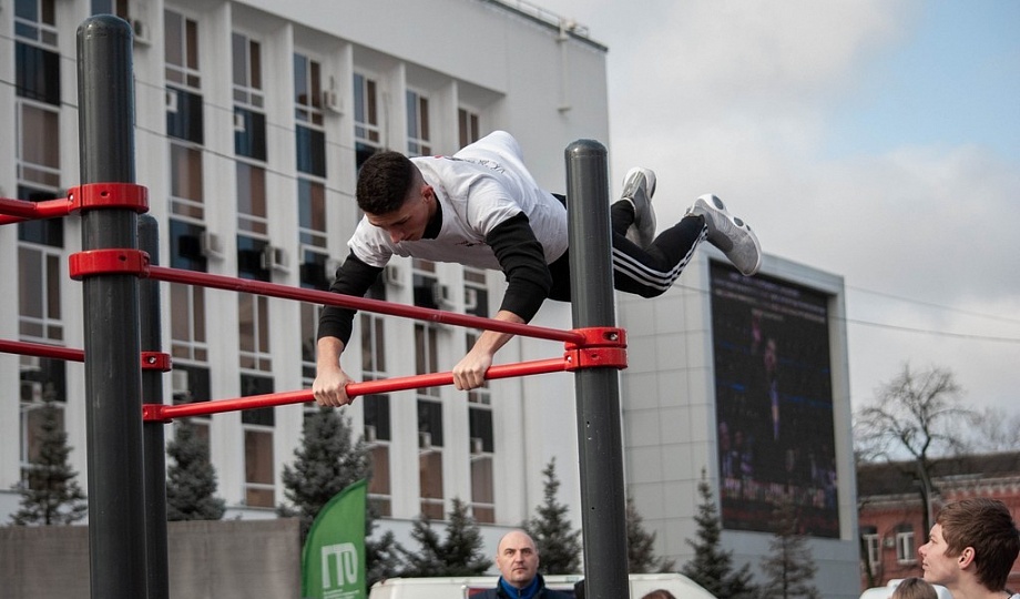 В течение дня для любителей спорта и активного образа жизни на площади организованы различные локации — воркаут-зона, стритбольная площадка, идут тренировки по зумбе, кросс-фиту, футбол в формате «Один на один». Завершилась зарядка мастер-классом представителей Краснодарской краевой федерации воркаута.