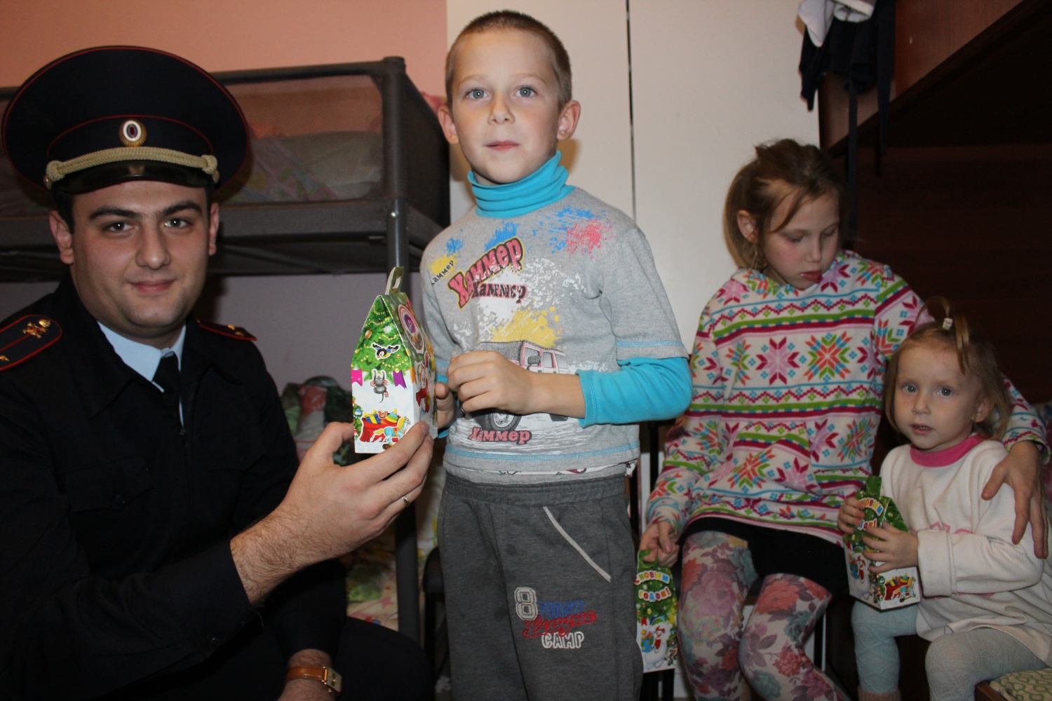 Полицейские посетили семьи, в которых воспитываются восемь, шесть и трое детей разного возраста. Семнадцать детей из семей, находящихся в трудной жизненной ситуации, в преддверии Нового года обеспечены полным набором продуктов питания и сладкими подарками. Двухмесячной девочке вручили набор детского питания и первого прикорма.