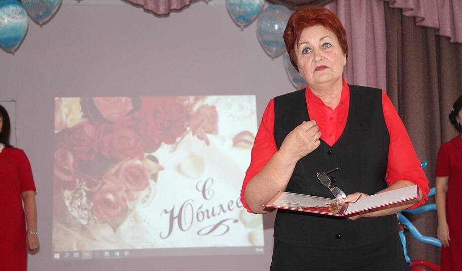От имени начальника управления образованием Елены Владимировны Руденко председатель райкома профсоюза работников образования Вера Семеновна Ткаченко вручила коллективу-юбиляру приветственный адрес.