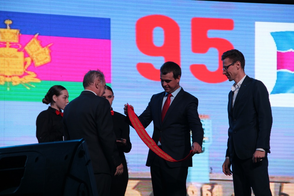 От лица губернатора края Вениамина Кондратьева жителей района поздравил временно исполняющий обязанности руководителя департамента инвестиций и развития малого и среднего предпринимательства Краснодарского края Виталий Воронов: