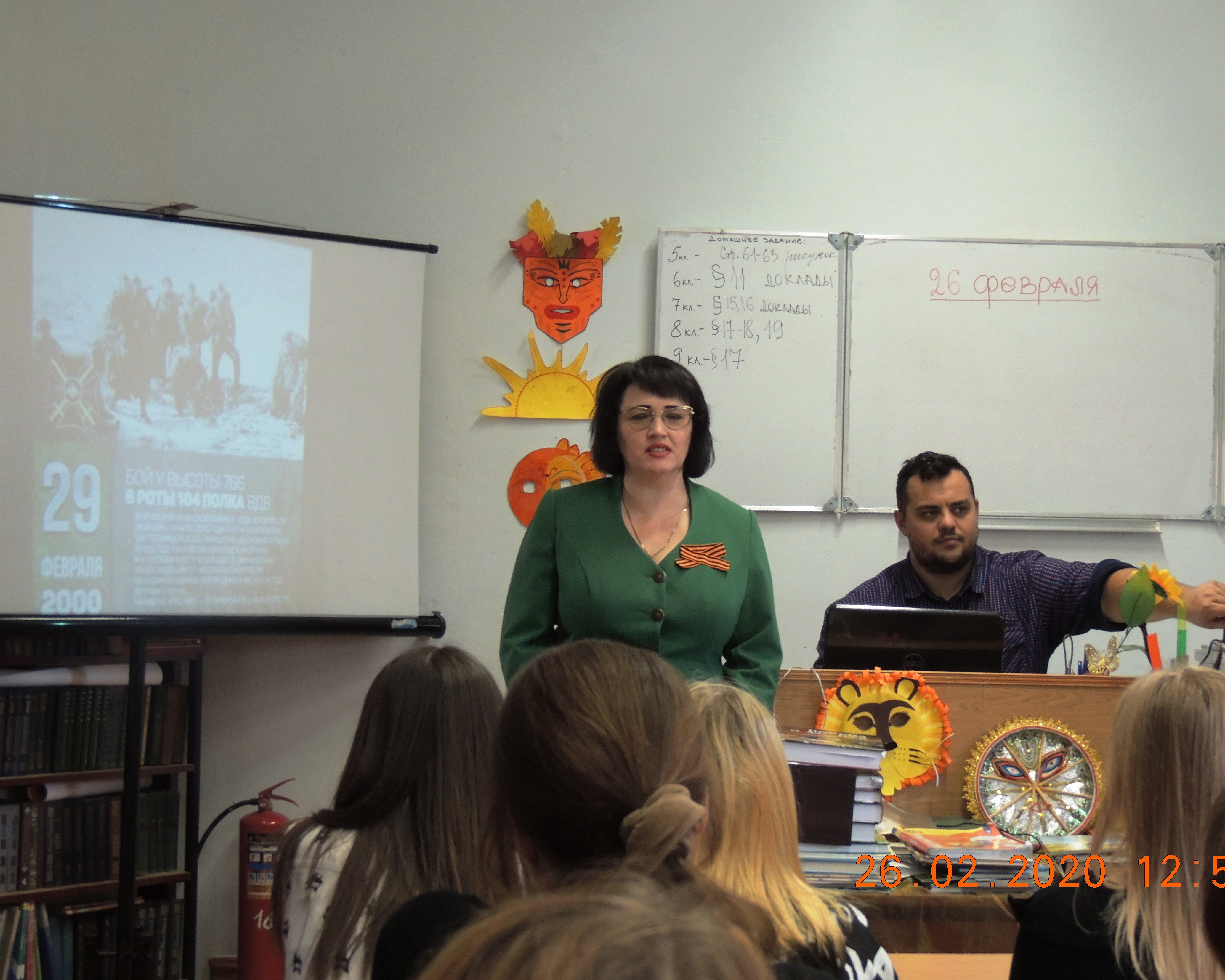 1 марта 2020 года исполнится двадцать лет со дня трагических событий в Аргунском ущелье Чечни, когда 6-я рота 76-й дивизии под командованием гвардии подполковника Марка Евтюхина погибла в неравном бою.Десантники сдерживали натиск двух тысяч боевиков. Из 90 бойцов выжили только шестеро. Звание Героя России присвоено 22-м военнослужащим, Орденами Мужества были награждены 69 солдат и офицеров, 63 из них – посмертно. Чтобы еще раз напомнить всей стране о величии подвига десантников президент Российской Федерации Владимир Путин поручил провести в 2020 году памятные мероприятия, посвященные легендарной 6-й роте. В преддверии памятной даты сотрудниками МБУК «РДК» г. Темрюка на базе МБОУ СОШ № 3 для учащихся старших классов был организован и проведён урок памяти и мужества «Навечно в памяти народа». Ведущая урока художественный руководитель МБУК «РДК» Светлана Волкова рассказала всем присутствующим, что подвиг десантников 6-й и 4-й роты у 766 высоты сумел сломить волю боевиков к продолжению войны. Масштабное вторжение международного терроризма в Чечню было остановлено. По свидетельству генерал-полковника Г. Н. Трошева, в то время командующего Объединённой группировкой федеральных сил на Северном Кавказе, именно после боя у высоты 766 в плен стали сдаваться целые подразделения боевиков, чего не было прежде за всю историю контртеррористической операции.
