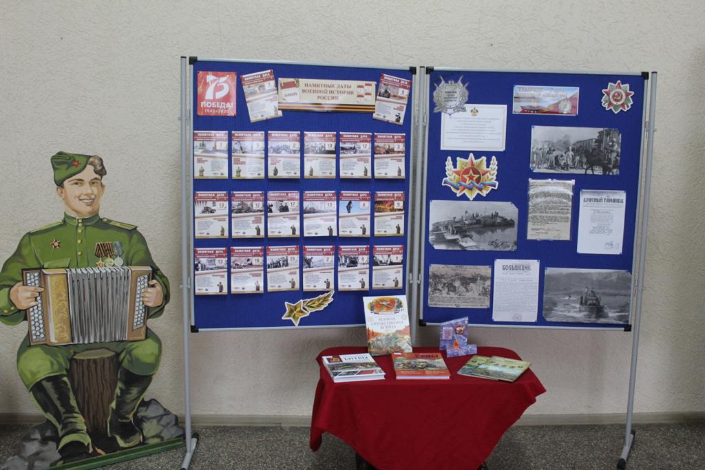 В фойе дома культуры городской библиотекой, историко-археологическим музеем, клубом исторической реконструкции «Тмутаракань» и городским объединением культуры была организована выставка, посвященная юбилею Великой Победы.