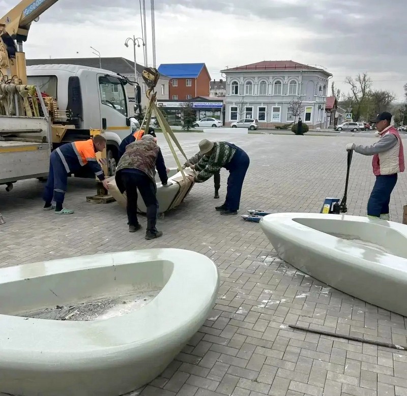 В парке имени А. С. Пушкина Темрюка установили отреставрированные скамьи и вазоны, стилизованные под камень.