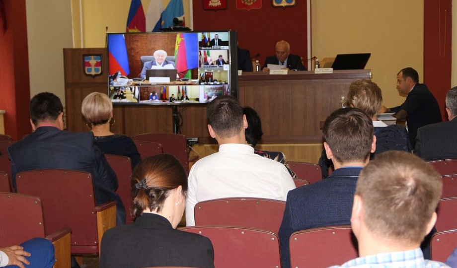 В режиме видеоконференции в нем приняли участие руководители региональных министерств, главы городов и районов, представители учреждений образования, здравоохранения, культуры, казаки, журналисты — всего более 1000 человек.