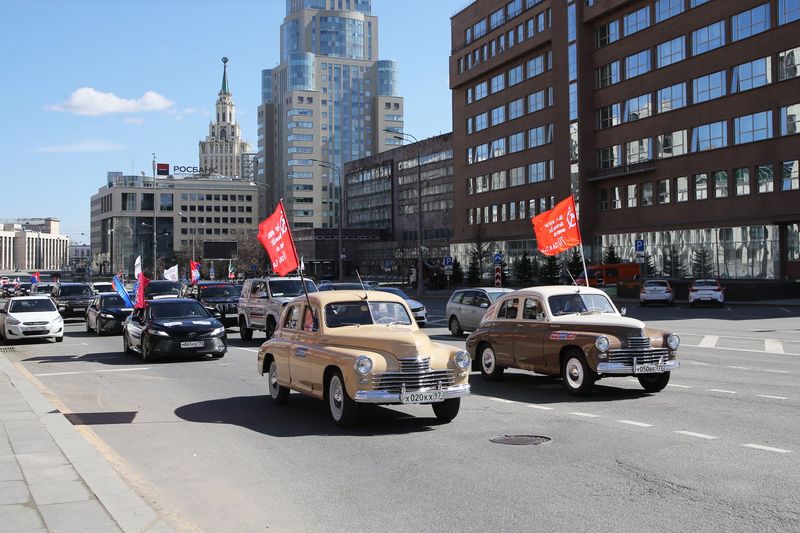 Ранее 1 мая автоколонна проехала по центру Москвы. Здесь активисты возложили цветы к Вечному огню и посетили Центральный музей Великой Отечественной войны на Поклонной горе.