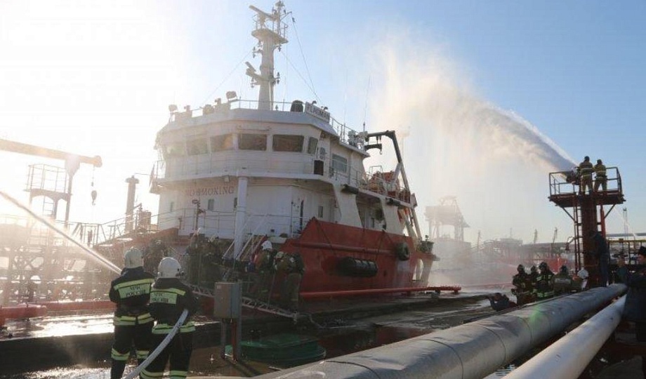 В Новороссийске силы РСЧС отработали условную чрезвычайную ситуацию в морском порту. По легенде учений, произошел пожар, а также разлив 25 тонн нефти.