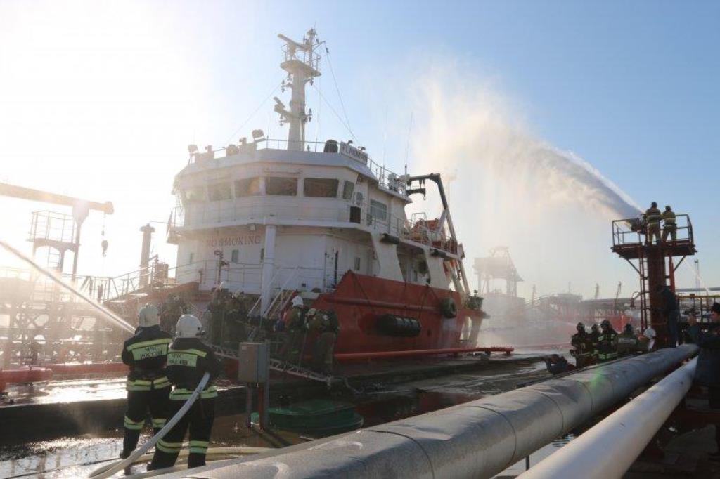 В Новороссийске силы РСЧС отработали условную чрезвычайную ситуацию в морском порту. По легенде учений, произошел пожар, а также разлив 25 тонн нефти.