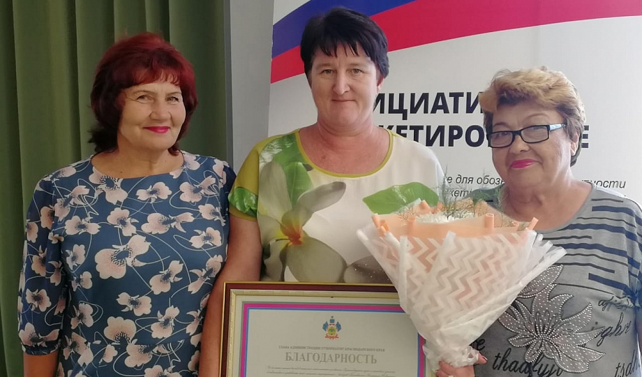 В ходе семинара благодарственным письмом губернатора Краснодарского края Вениамина Кондратьева за большой личный вклад в социально-экономическое развитие Краснодарского края и активное участие в подготовке и проведении выборов президента РФ была награждена председатель ТОС №3 Старотитаровского сельского поселения Татьяна Черных.