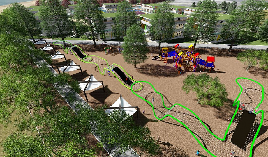 В санаторно-курортном комплексе для семейного отдыха на 1238 мест и для детского отдыха на 837 летних мест и 546 дополнительных мест можно будет воспользоваться услугами бальнеологии, гидротерапии, физиотерапии и эрготерапии. В проекте предусмотрено строительство спортивных залов и плавательных бассейнов круглогодичного функционирования, стадиона, открытых спортивных площадок и бассейнов.