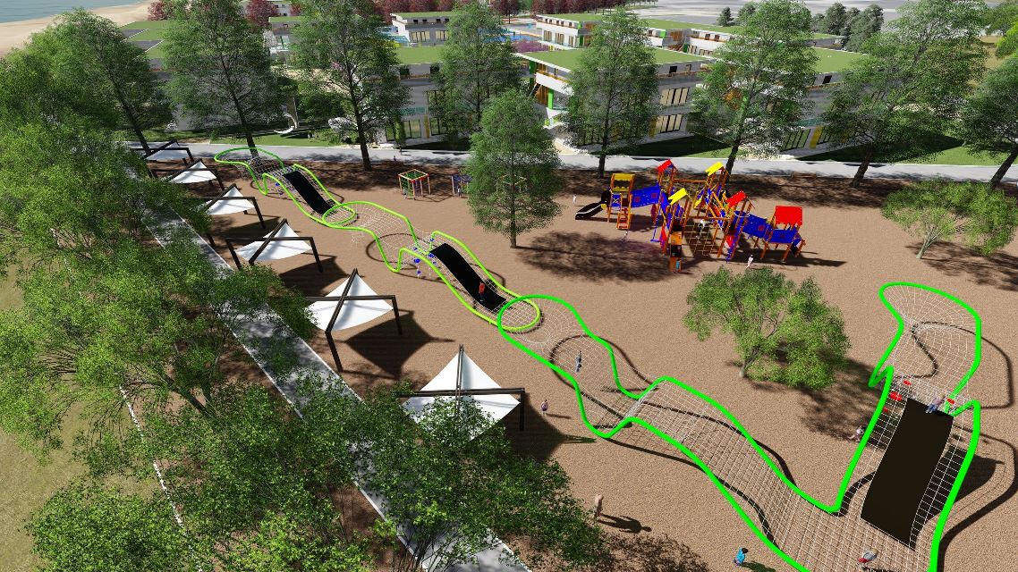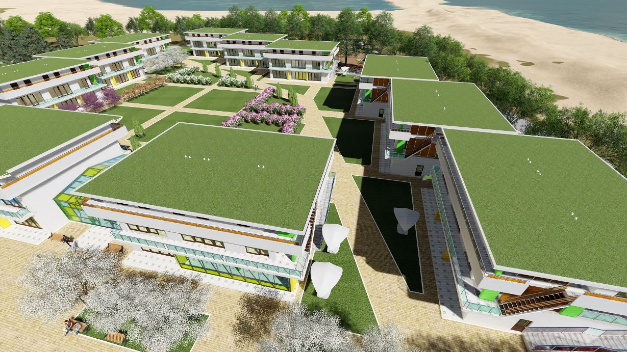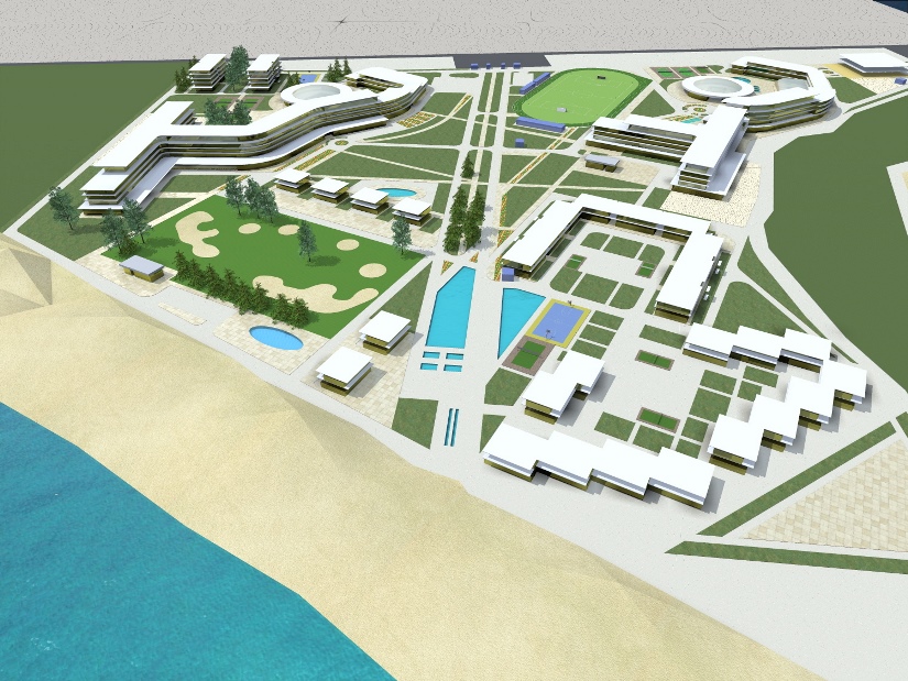 В санаторно-курортном комплексе для семейного отдыха на 1238 мест и для детского отдыха на 837 летних мест и 546 дополнительных мест можно будет воспользоваться услугами бальнеологии, гидротерапии, физиотерапии и эрготерапии. В проекте предусмотрено строительство спортивных залов и плавательных бассейнов круглогодичного функционирования, стадиона, открытых спортивных площадок и бассейнов.