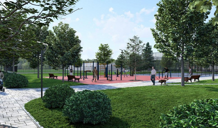 Спортивный комплекс будет включать три беговые дорожки с безопасным прорезиненным покрытием, футбольное поле с воротами для разных возрастных групп, а также благоустроенную территорию с лавочками, урнами и ограждением.