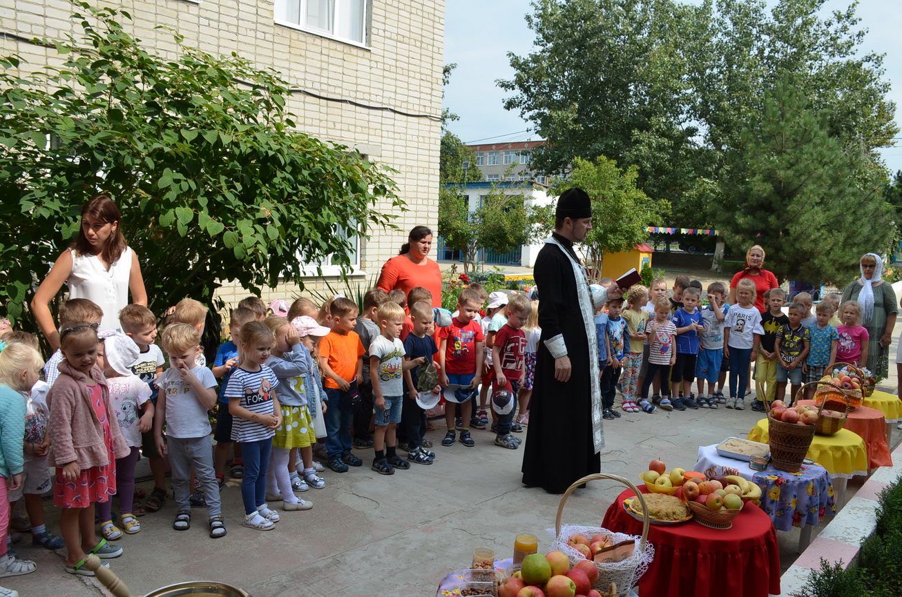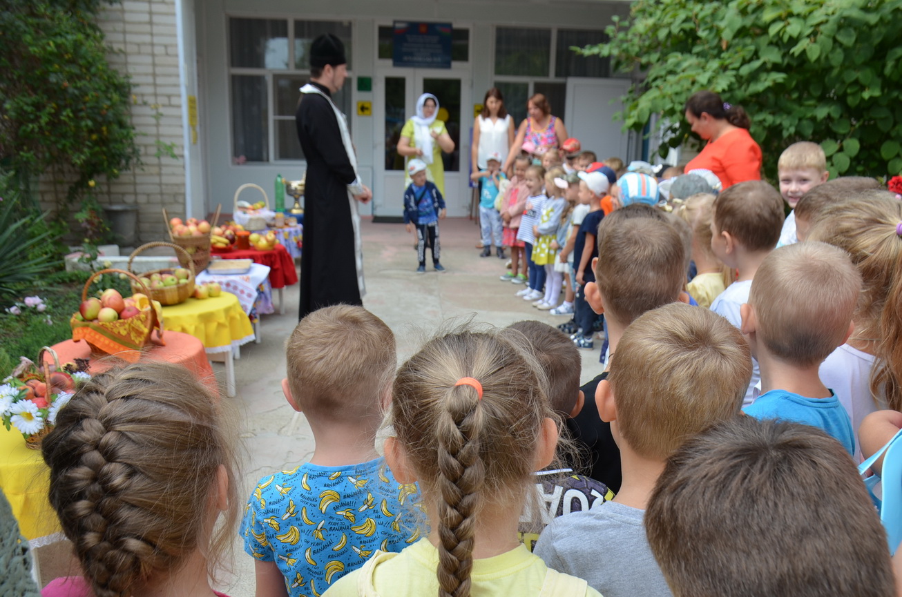 Сегодня же по приглашению заведующих городских детских садов №4, №6, №9 в рамках миссионерской деятельности и религиозного образования настоятель храма святого благоверного князя Александра Невского города Темрюк протоиерей Виталий Колмык посетил данные дошкольные учреждения. Здесь также прошли, ставшие уже традиционными, мероприятия, посвященные празднику «Яблочный Спас». Протоиерей Виталий поздравил всех присутствующих с праздником и рассказал о его истории, народных традициях, сопровождающих праздник; объяснил, в чем заключается преображение человеческой души. Затем освятил яблоки, виноград и другие фрукты.
